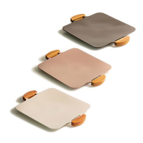 おうちでもアウトドアでも使える木製ハンドルでかわいいカラフルなグリルパン。